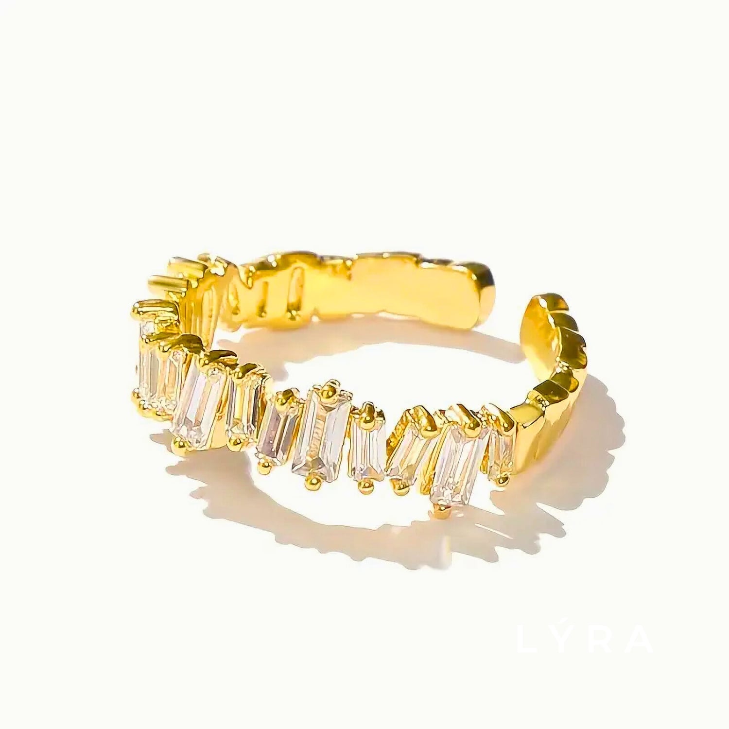 ルミエールシャインリングは、美しい輝きを放つ上質なアクセサリーです。バゲットカットのジルコニアの輝きが、あなたの魅力を引き立てます。特別な日のお出かけからカジュアルな日常使いまで、様々なスタイルにぴったりのアイテムです。