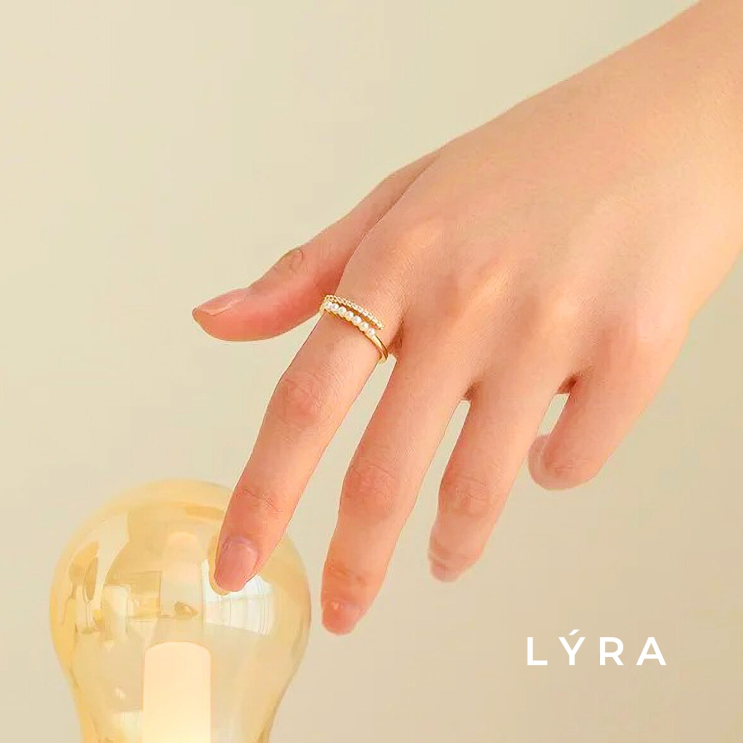 フェミニンパールレイヤードリングは、女性らしさを引き立てる優雅なデザインが特徴のリングです。パールとジルコニアが施されたレイヤードスタイルが、指元を華やかに彩ります。特別な日からカジュアルなスタイルまで幅広く楽しめるアイテムです。